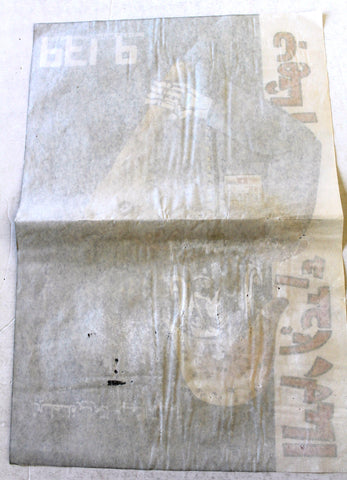 • Condition: Fair. Water damage throughout resulted in yellowing, white spot and fading. Curling. No tears. Folded.