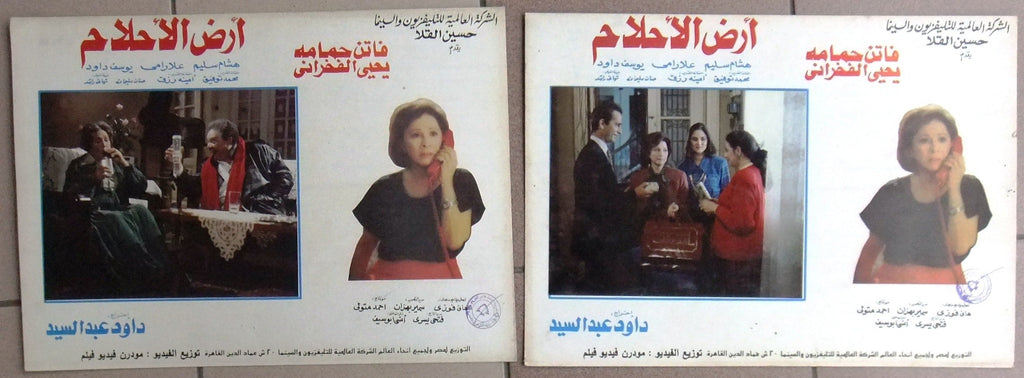 Set of 11 صور فيلم مصري أرض الأحلام, فاتن حمامة Film Lobby Card 90s Original (Photo mounted on soft cardboard Lobby Cards)