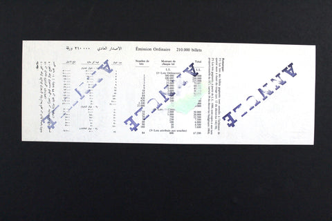 Lebanon National Lottery (Specimen) Loterie Nationale Libanaise 1985 ورقة اليانصيب الوطني اللبناني