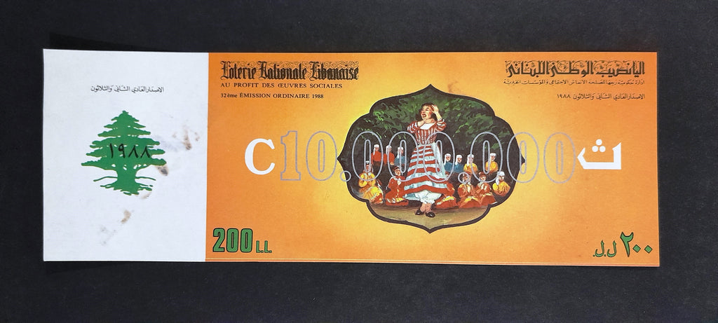 Lebanon National Lottery (Specimen) Loterie Nationale Libanaise 1988 ورقة اليانصيب الوطني اللبناني