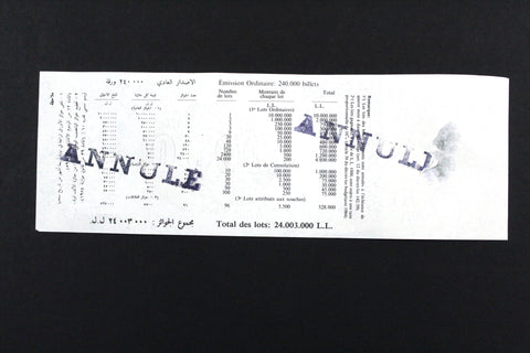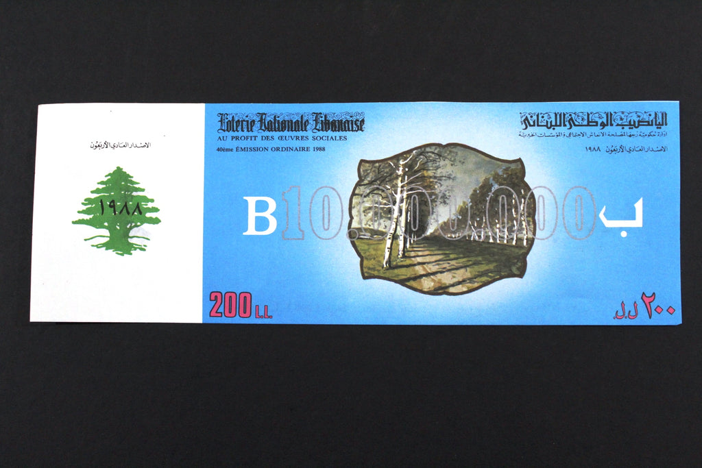 Lebanon National Lottery (Specimen) Loterie Nationale Libanaise 1988 ورقة اليانصيب الوطني اللبناني