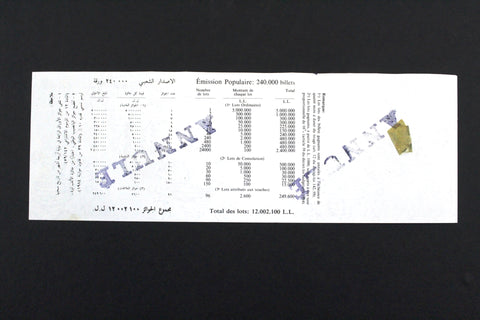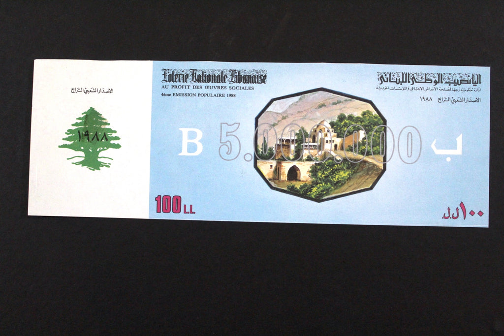 Lebanon National Lottery (Specimen) Loterie Nationale Libanaise 1988 ورقة اليانصيب الوطني اللبناني