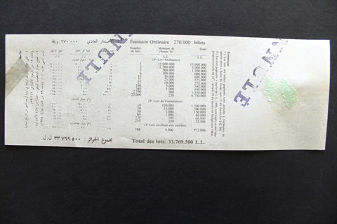 Lebanon National Lottery (Specimen) Loterie Nationale Libanaise 1989 ورقة اليانصيب الوطني اللبناني