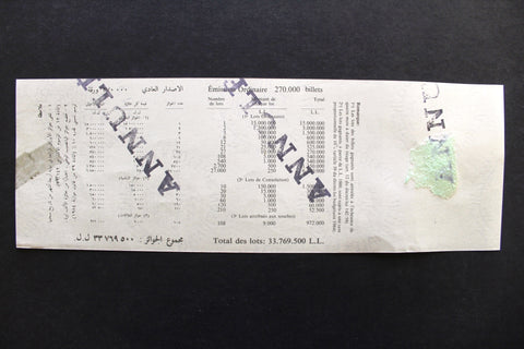 Lebanon National Lottery (Specimen) Loterie Nationale Libanaise 1989 ورقة اليانصيب الوطني اللبناني
