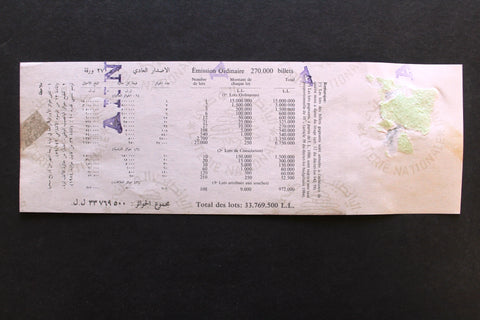 Lebanon National Lottery (Specimen) Loterie Nationale Libanaise 1989 ورقة اليانصيب الوطني اللبناني