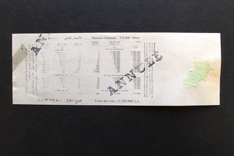 Lebanon National Lottery (Specimen) Loterie Nationale Libanaise 1989 ورقة اليانصيب الوطني اللبناني