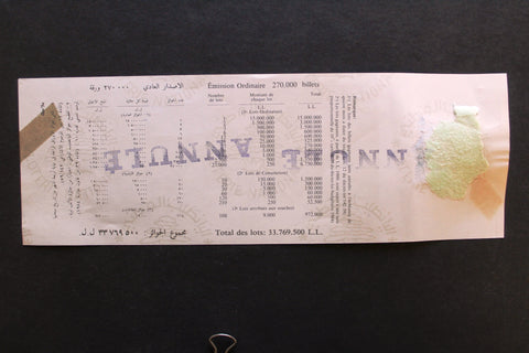 Lebanon National Lottery (Specimen) Loterie Nationale Libanaise 1989 ورقة اليانصيب الوطني اللبناني