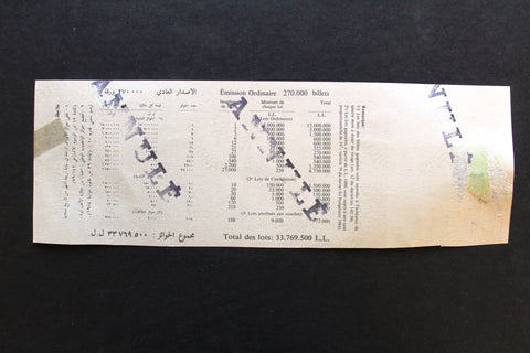 Lebanon National Lottery (Specimen) Loterie Nationale Libanaise 1989 ورقة اليانصيب الوطني اللبناني