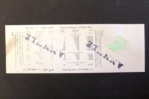 Lebanon National Lottery (Specimen) Loterie Nationale Libanaise 1989 ورقة اليانصيب الوطني اللبناني