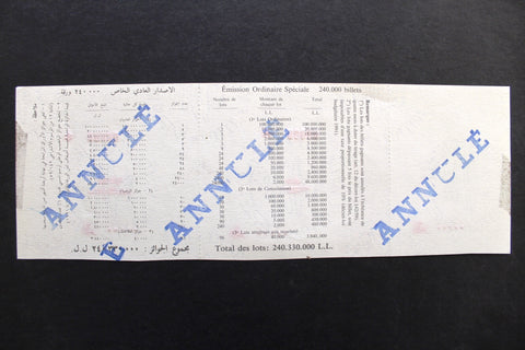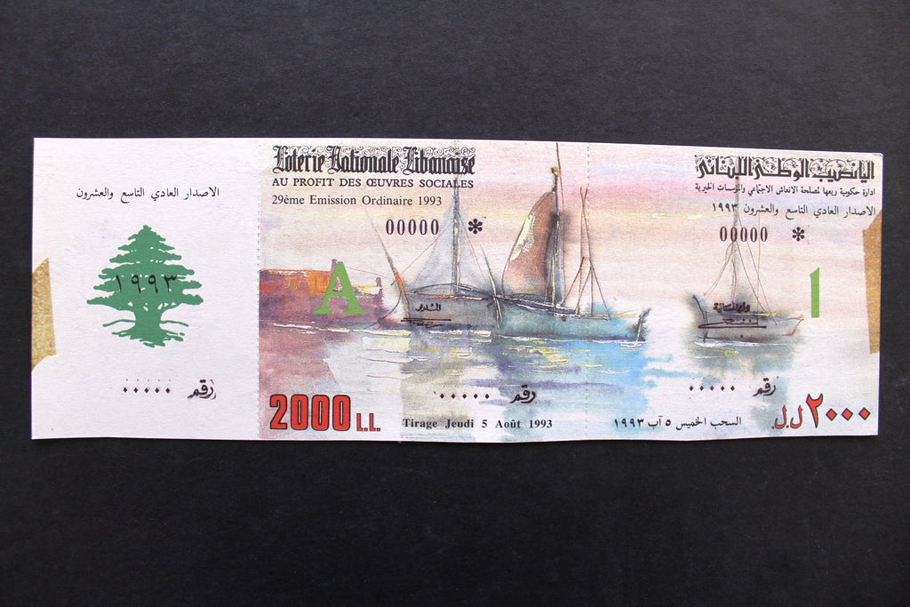 Lebanon National Lottery (Specimen) Loterie Nationale Libanaise 1993 Aug. 5 ورقة اليانصيب الوطني اللبناني