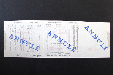 Lebanon National Lottery (Specimen) Loterie Nationale Libanaise 1993 Dec. 23 ورقة اليانصيب الوطني اللبناني