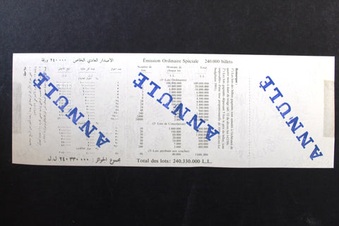 Lebanon National Lottery (Specimen) Loterie Nationale Libanaise 1992 Dec. 31 ورقة اليانصيب الوطني اللبناني