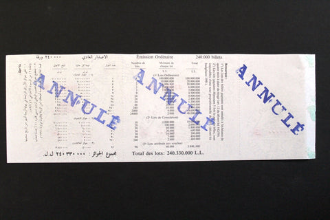 Lebanon National Lottery (Specimen) Loterie Nationale Libanaise 1994 Oct. 20 ورقة اليانصيب الوطني اللبناني