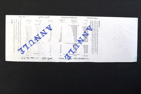 Lebanon National Lottery (Specimen) Loterie Nationale Libanaise 1995 Aug. 10 ورقة اليانصيب الوطني اللبناني