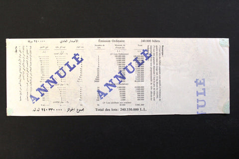 Lebanon National Lottery (Specimen) Loterie Nationale Libanaise 1995 Jun. 1 ورقة اليانصيب الوطني اللبناني