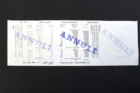 Lebanon National Lottery (Specimen) Loterie Nationale Libanaise 1995 May. 18 ورقة اليانصيب الوطني اللبناني