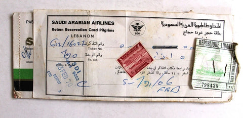 - Type: Original Beirut to SA Airlines Passenger Ticket and Pilgrim Card. Stamp and Luggage claim tickets طاقة الحجاج, تذكرة الراكب