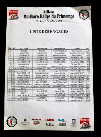 خريطة سباق رالي الربيع لبنان سيارات Auto Lebanon ATCL Arab Rally Map Marlboro 96