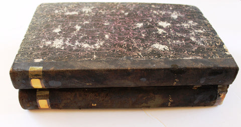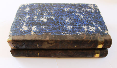 Description: The volumes feature a marbled paper cover with a leather spine.