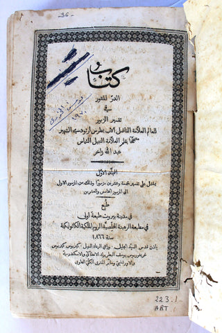 كتاب الدر المنثور في تفسير الزبور, الجزء الأول والثاني، الطبعة 1 Arabic Leban Book 1866/1968