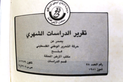 مجلة تقرير الدراسات الشهري, فتح Palestine Fateh #58 Lebanese Arabic Report Magazine 1981