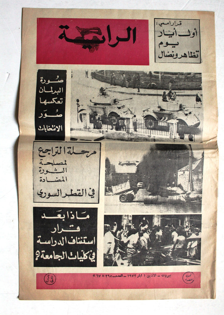 Content: The headlines on the cover suggest a focus on general news, politics (mentioning "The Syrian Region" and "counter-revolution"), and education ("What after the decision to resume study in university faculties?")