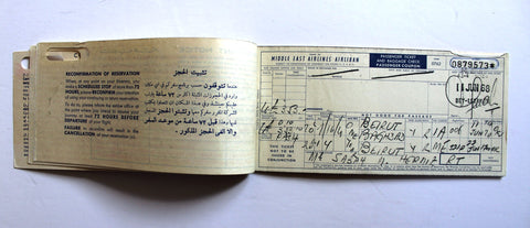 PASSENGER TICKET MIDDLE EAST AIRLINES BEIRUT BAGHDAD الطيران الدولي اللبناني 1968
