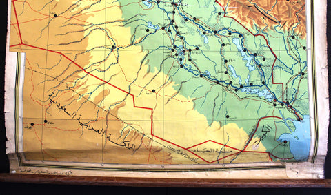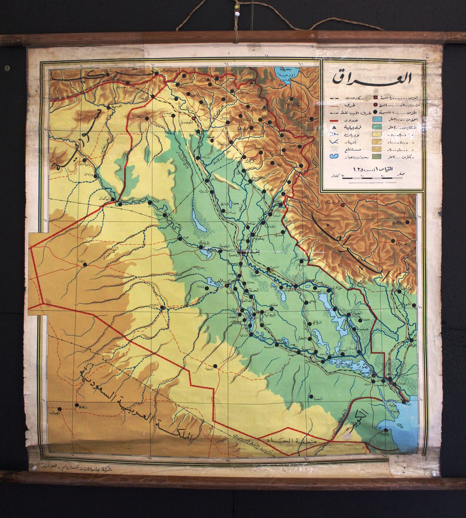 Vintage Pull-down School Wall Map of Iraq (Pipe Lines) خريطة العراق