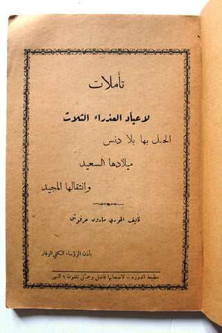 كتاب تأملات لاعياد مريم العذراء المجيدة الخوري مارون حرفوش Arabic Book 1947