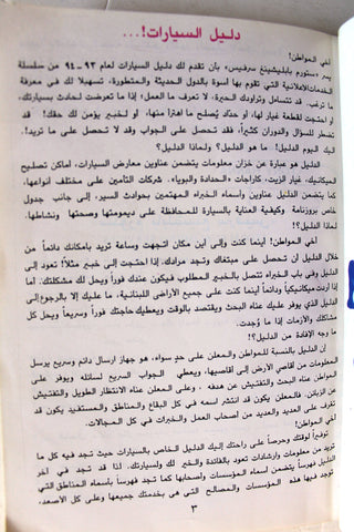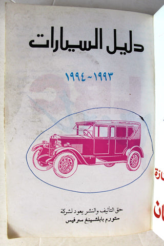 كتاب دليل السيارات Arabic Car Lebanese Guide Book 1993-94