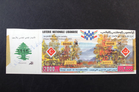 Lebanon National Lottery (Specimen) Loterie Nationale Libanaise 1993 Nov. 25 ورقة اليانصيب الوطني اللبناني