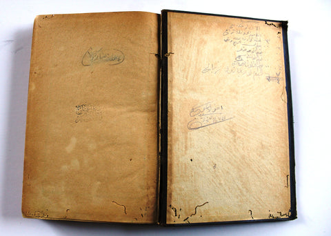 Condition: Acceptable. Heavy overall wear and aging, Spine shows significant rubbing, discoloration, and surface loss. Covers are worn with scuffing, staining, and surface abrasions. Edges and corners bumped and rubbed. Hinged. Covers show minor bookworm holes; text pages unaffected and fully readable. The flyleaves have several handwritten notes and a stamped seals by the previous owner.